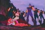 Intanto, nell'Isola del Riposo, alcuni soldati stanno malmenando il capo del villaggio; Phoenix arriva in soccorso del vecchio ed elimina gli scagnozzi, che volevano solo stanarlo. Infine, compaiono due Cavalieri d'Argento, discepoli di Virgo: Loto e Pavone. Phoenix inizia a combattere contro Pavone, mentre Loto sta pregando Virgo; ad un tratto, Phoenix si sente indebolito ed ha la peggio. Intanto, il vecchio muore e la sua nipotina si mette in mezzo tra i cavalieri, ma Pavone la getta telepaticamente nel vulcano. Phoenix è sconvolto e lancia il Fantasma Diabolico, ma non ha alcun effetto sull'avversario: infatti, Virgo insegna ai suoi discepoli a non aver paura di niente. Pavone recita una preghiera e Phoenix viene immobilizzato dalla telepatia di Virgo; Pavone attacca di continuo l'avversario indifeso. Nel frattempo, al Grande Tempio, Andromeda sente che suo fratello è in pericolo, ma non può aiutarlo. Phoenix cade vicino al vulcano e vede la bambina aggrappata alla roccia, che lo incoraggia. Ora anche Loto interviene nel combattimento... |