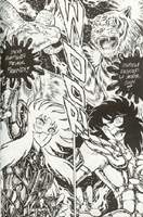 Mi lancia contro Mur un Ugly Elapsion, ma questi lo para e contattacca con lo Stardust Revolution, colpendolo. Ora Mi si trasforma in un bruco gigante, intrappolando l'avversario con dei filamenti, fino a ricoprirlo completamente. Sirio raggiunge la quarta casa, ma, non vedendo nessuno, prosegue. Mur riesce a liberarsi, ma il bruco è scomparso; al suo posto c'è un bozzolo, dal quale esce l'aspetto definitivo di Mi. Ora ha finalmente inizio la lotta tra due maestri di telepatia! |